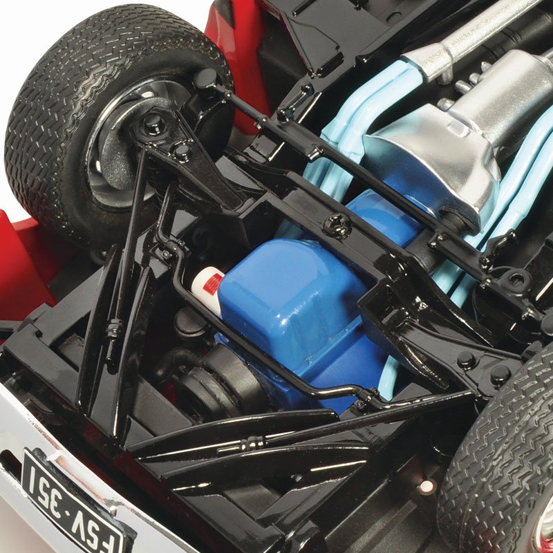 The Front chassis shows the engine sump, exhaust system and working suspension. The front wheels are even linked to the steering wheel.