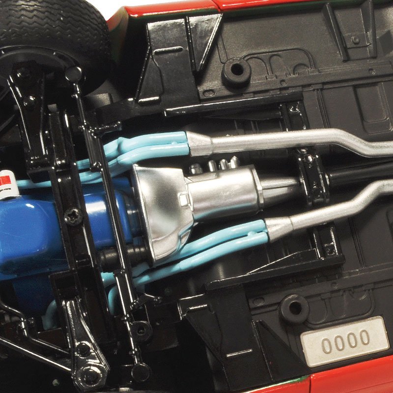 - The front chassis shows the engine sump, exhaust system and working suspension. The front wheels are even linked to the steering wheel.