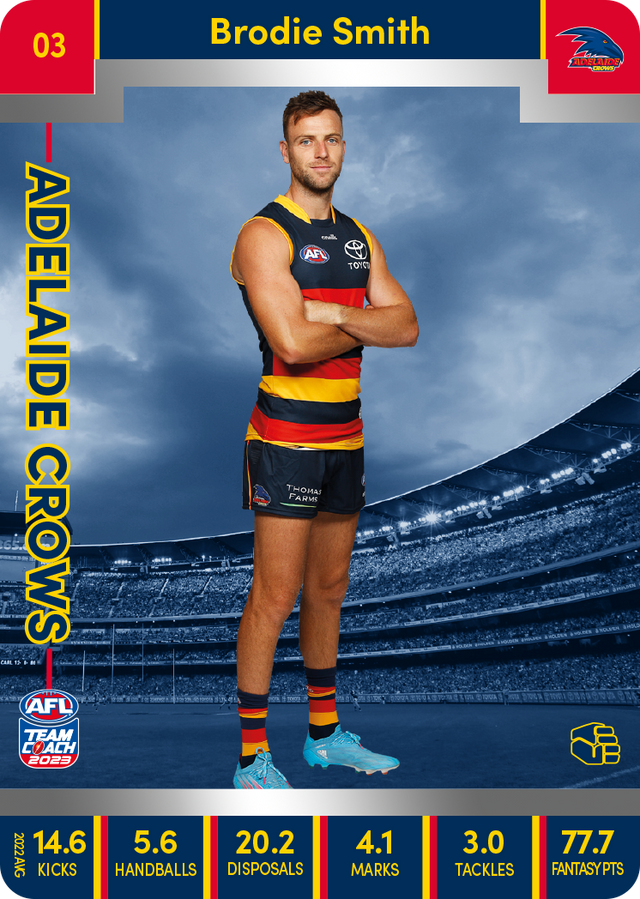 Brodie Smith, 03, Silver Parallel, 2023 Teamcoach AFL is backordered and will ship as soon as it is back in stock.