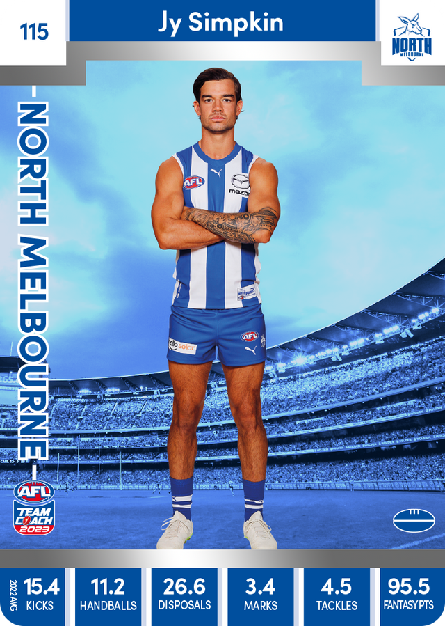 Jy Simpkin, 115, Silver Parallel, 2023 Teamcoach AFL is backordered and will ship as soon as it is back in stock.