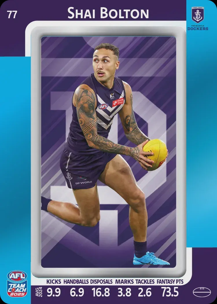Shai Bolton, #77, Blue Parallel, 2025 Teamcoach AFL