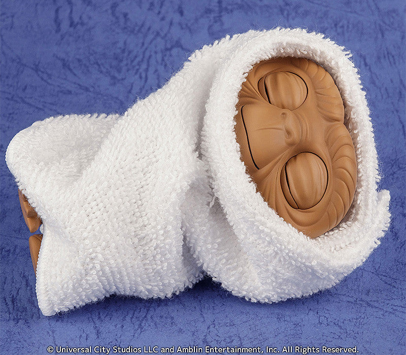 From "E.T.", the timeless masterpiece that swept the world into a whirlwind of emotions, comes a Nendoroid of E.T.! E.T. can be displayed with his eyes closed using an interchangeable expression part. The figure also comes with a glowing fingertip (right hand) part, allowing you to create a memorable scene from the film in Nendoroid form. A towel to wrap E.T. in and the flower pot from the film's final scene are also included as optional parts.