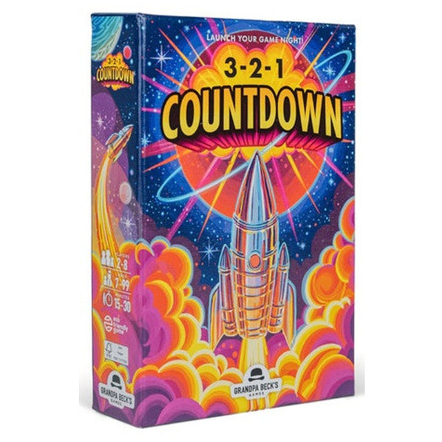 3-2-1 Countdown is a retro space travel-themed game in which players race to blast off by earning points with the lowest total hand value. Shed your cards onto one of the two discard piles by playing singles or sets, ending your turn by drawing a single card.