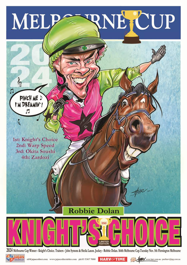 Knights Choice, 2024 Melbourne Cup, Harv Time Poster is backordered and will ship as soon as it is back in stock.