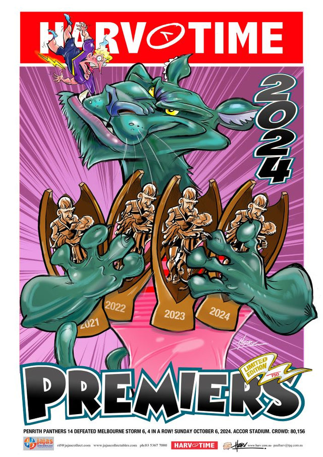 Penrith Panthers 2024 NRL Premiership Poster, FourPeat, Harv Time