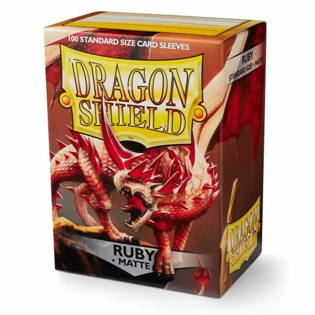 Clear front & sparkling Matte ruby back. The stone of passion at your fingertips. Matte sleeves are our popular line of textured Dragon Shield with superior handling. A perfect mix of durability and shuffle-ability.