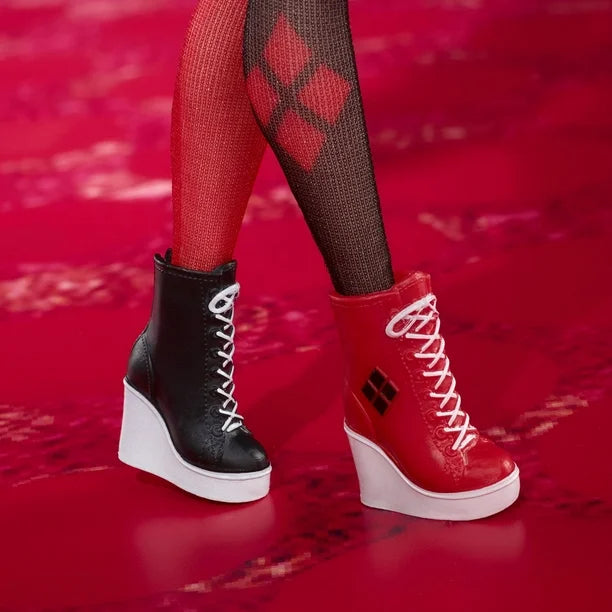 - This Barbie Signature Harley Quinn doll rocks her iconic rebellious red-and-black look with matching top, shorts, and thigh-high socks
