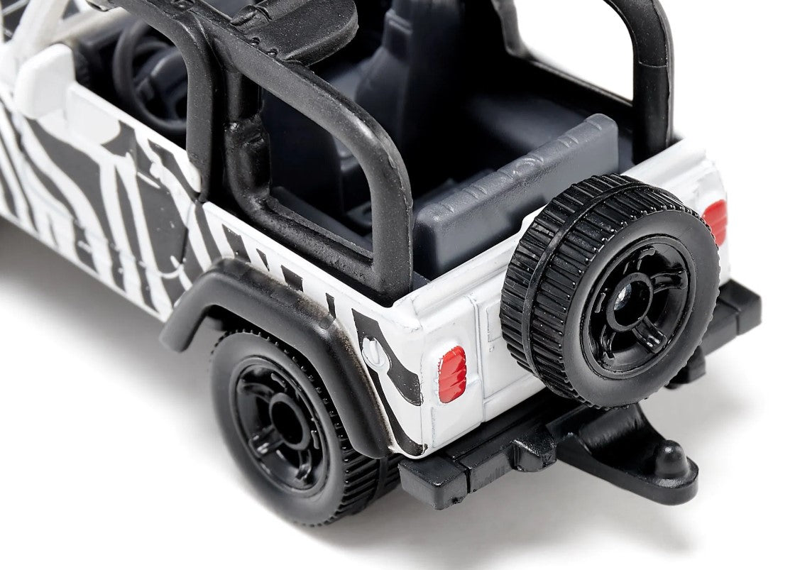 The legendary Jeep Wrangler is making its way into the siku range with another vehicle in a unique safari style. The angular metal body paired with large all-terrain wheels in a cool black and white safari look gives this model its adventurous character. The trailer coupling for combining with trailers on the same scale adds to the fun.