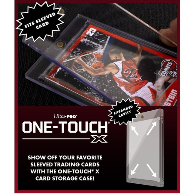 Show off your favorite sleeved trading cards with the ONE-TOUCH X card storage case! Designed as the final destination for your collectible trading cards, the ONE-TOUCH X features a bigger inner cavity to hold a standard size collectible card of 35pt in thickness inside a protective sleeve (up to Platinum Sleeve Size #15221), so you never have to remove your collectible card from its protective sleeve to display it. Every holder uses UV-blocking additives to protect cards from harmful UV-rays, and is made with non-PVC materials to provide acid-free protection - ensuring your valuable hit retains its condition while under display.