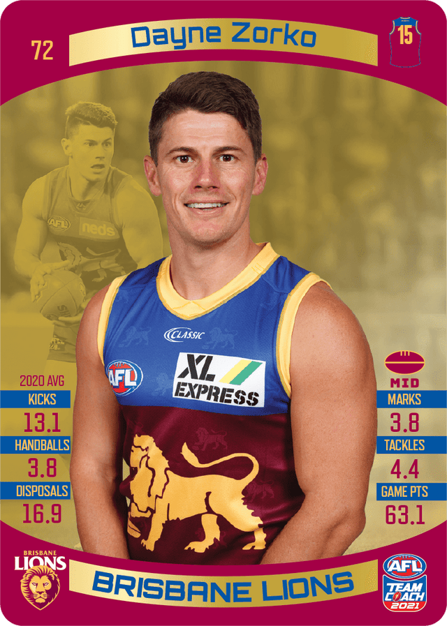 Dayne Zorko, Gold, 2021 Teamcoach AFL is backordered and will ship as soon as it is back in stock.