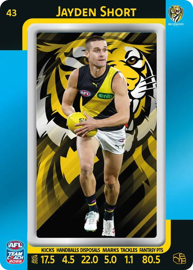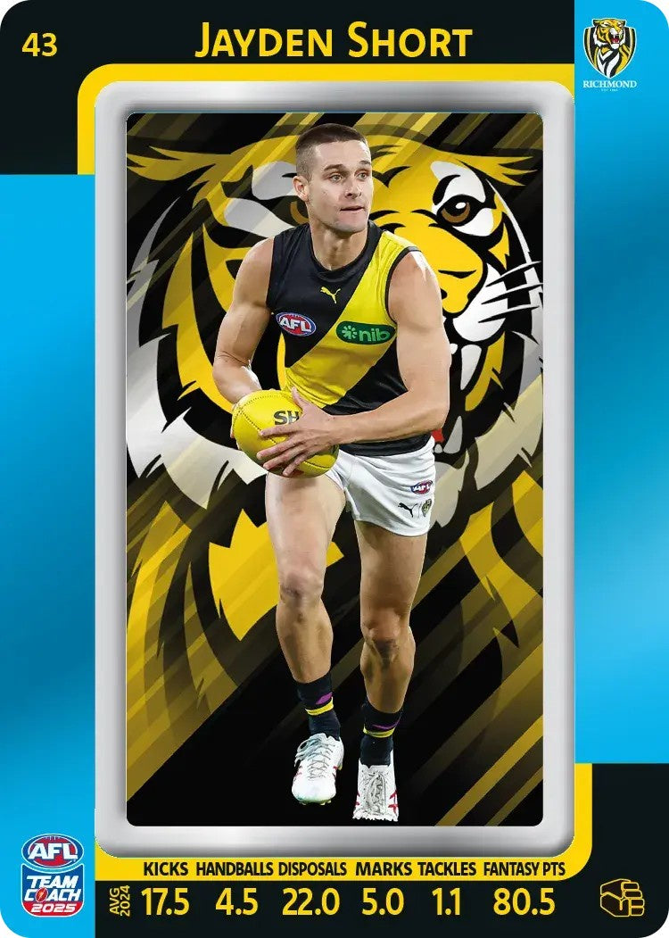 Jayden Short, #43, Blue Parallel, 2025 Teamcoach AFL