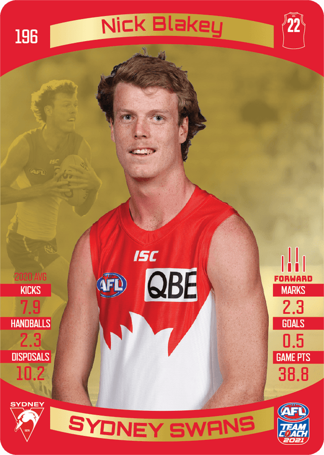 Nick Blakey, Gold, 2021 Teamcoach AFL is backordered and will ship as soon as it is back in stock.