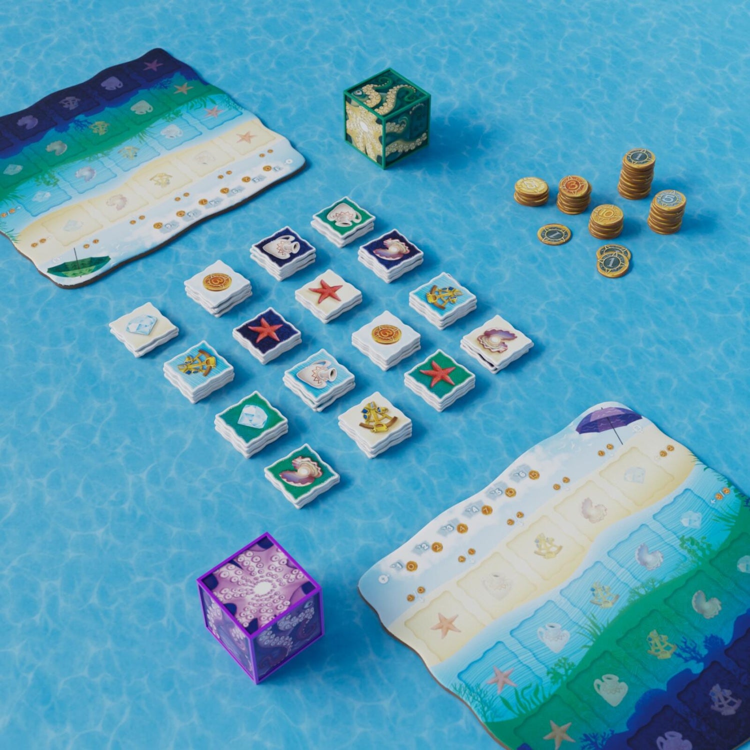 Playful Octopus compete to collect objects.