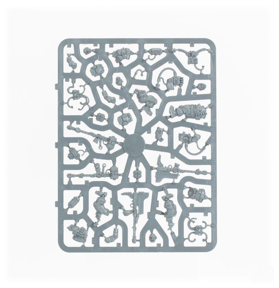 This set comprises 117 plastic components, and is supplied with a Citadel 50mm Round Base, 5x Citadel 28.5mm Round Bases, 3x Citadel 25mm Round Bases, and a Leagues of Votann Transfer Sheet with 555 numerals, runes, and markings for prominent Leagues. These miniatures are supplied unpainted and require assembly – we recommend using Citadel Plastic Glue and Citadel Colour paints.