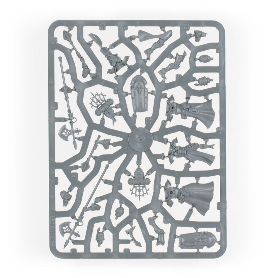 Cleanse the galaxy with Combat Patrol: Adepta Sororitas. This loaded box includes a versatile and balanced army, led by a powerful Canoness. She is in turn protected by an elite bodyguard of Celestian Sacresants, equipped for close combat. The core of the army is a full unit of Battle Sisters, and rounding it out is a mob of Arco-Flagellants, ready to charge headlong into battle, heedless of their own safety.